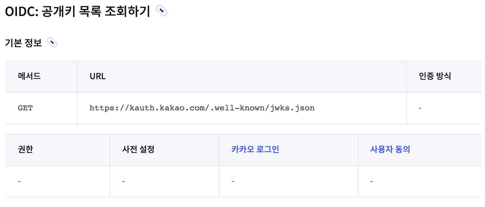 이 공개키는 카카오 디벨로퍼에 있는 공개키 목록 조회하기 api를 사용한다.